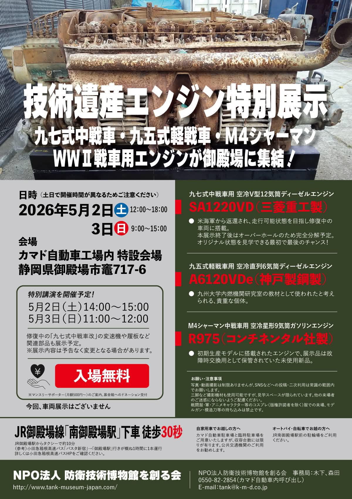 日本貴重な機会です。ぜひご覧ください。九七式中戦車のエンジンが見れるのは復元作業過程のこの機会のみです!。