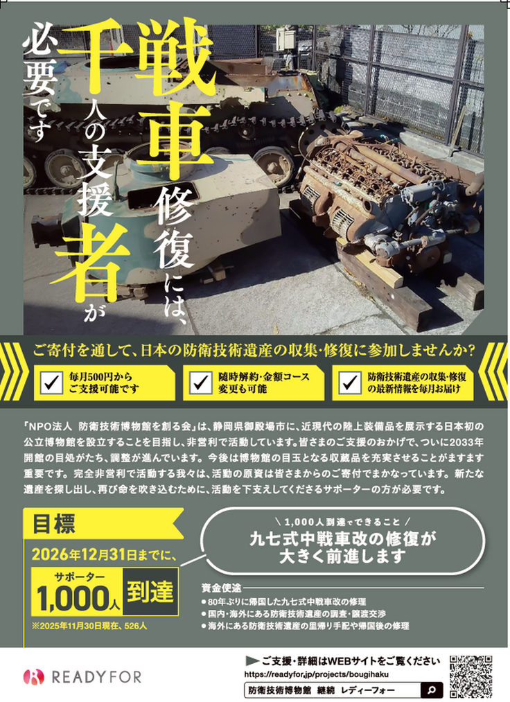 有志皆様の御厚意により、長年の宿願でありました帰還戦車保護用屋根、柵が新設されました